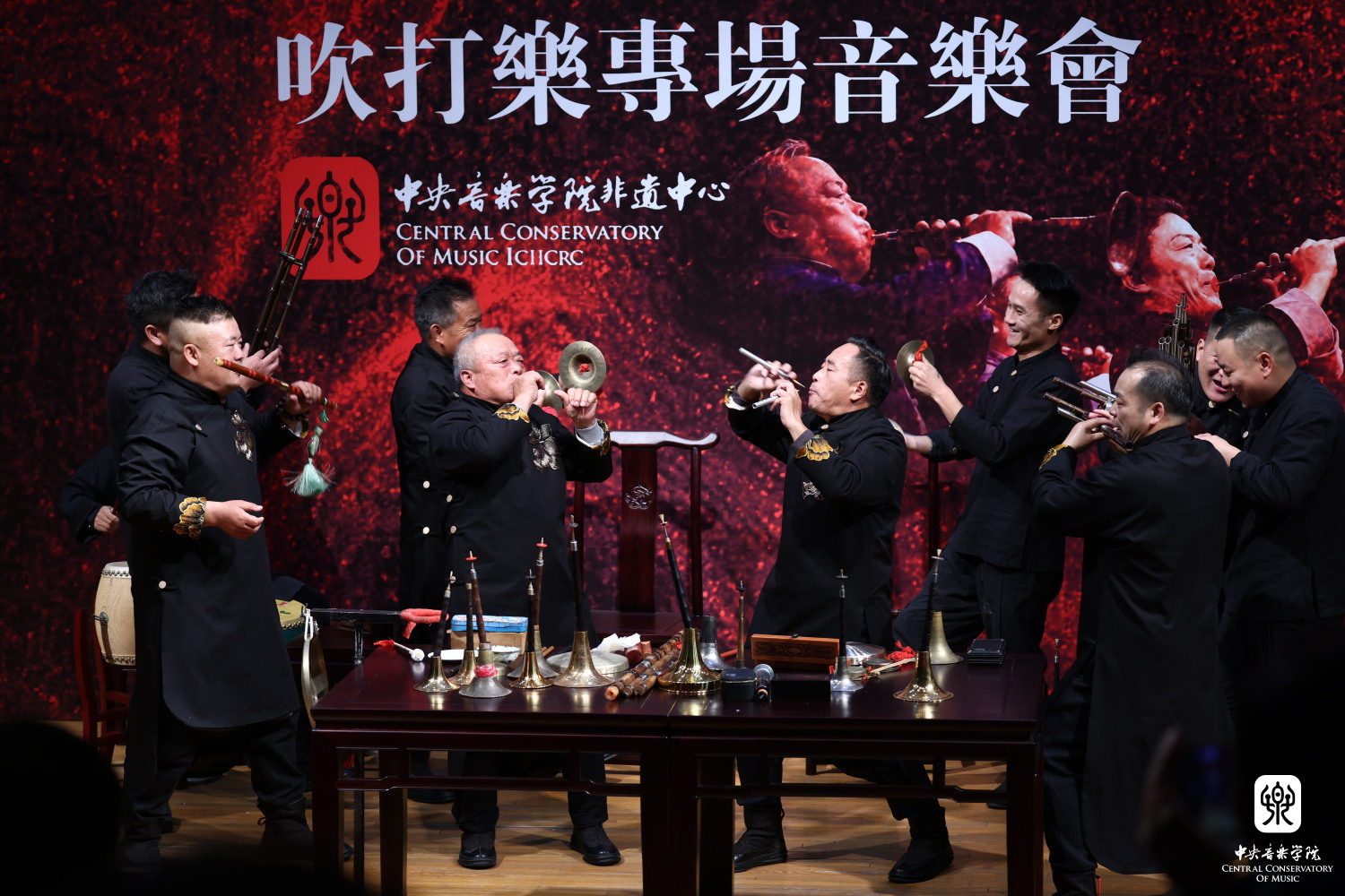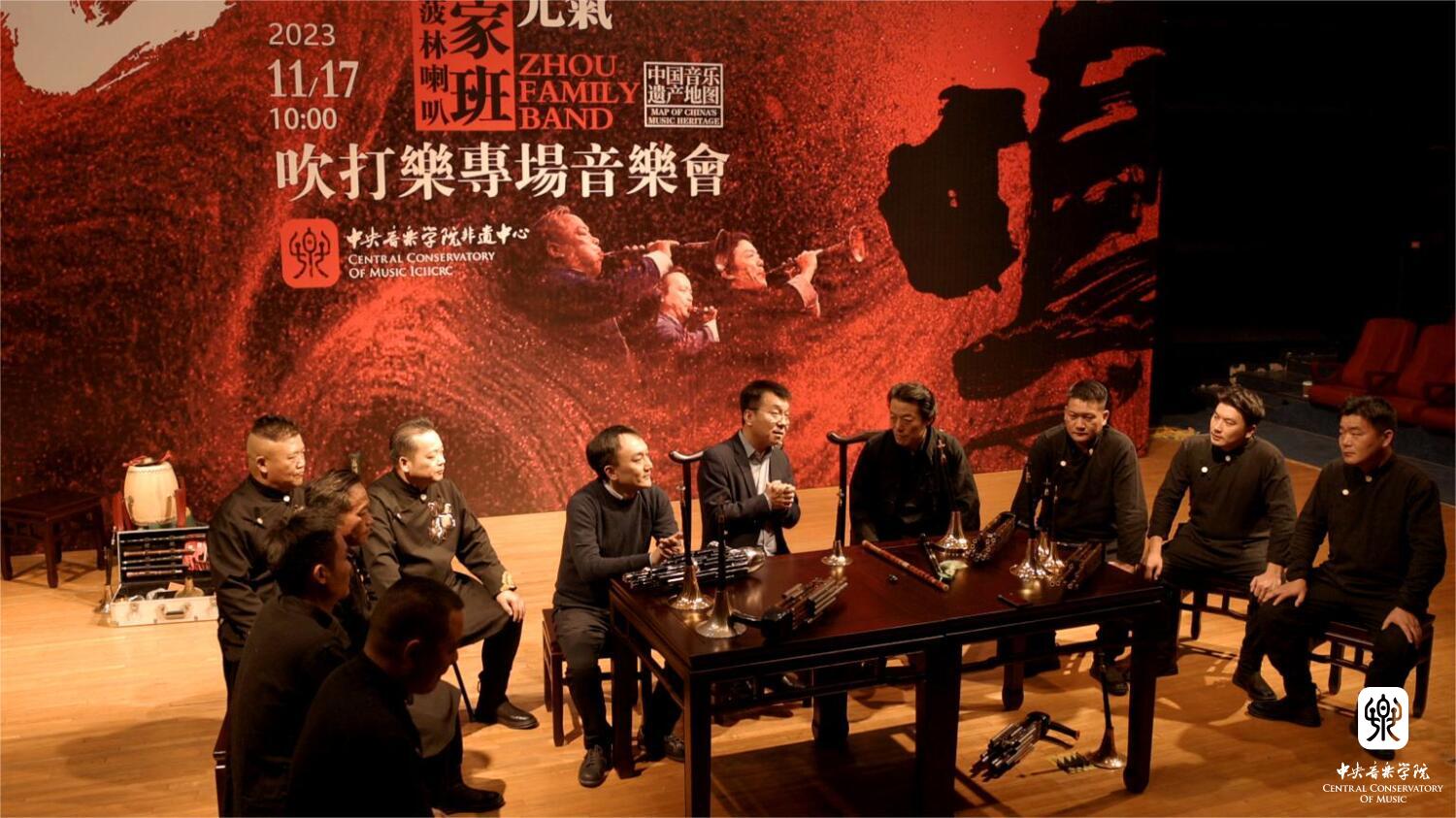 2023年11月17日,应我校非遗中心邀请,安徽灵璧菠林喇叭艺术代表性传承人周本鸣带领“周家班”在我校成功举办吹打专场音乐会及工作坊。